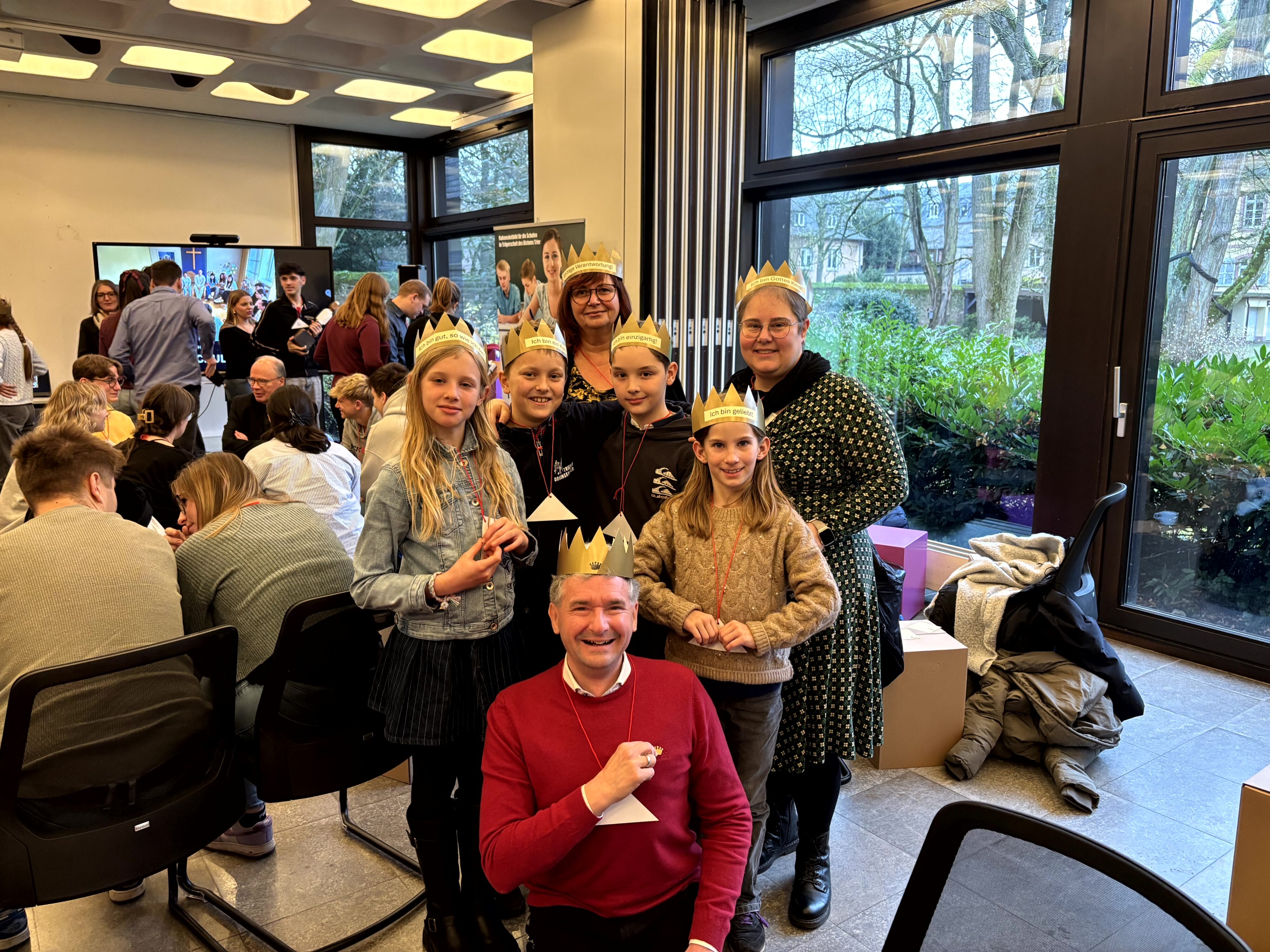 Andreas Thelen-Eiselen (St. Franziskus-Schule Koblenz) und Patrick Wilhelmy von der Schulabteilung des Bistums Trier erinnerten daran, dass sie im vom Papst Franziskus ausgerufenen Heiligen Jahr 2025 gemeinsam mit Martin Ramb (Bistum Limburg) und der Abteilung Jugend im BGV die Pilgerreise auf den Weg gebracht haben mit dem Ziel, junge Menschen zur Auseinandersetzung mit der „von Gott geschenkten Königswürde eines jeden Menschen“ anzuregen. Dass dies gelungen sei, zeigten die Plakatwände mit Fotos und die SlideShow, die am Rande der Veranstaltung über die zahlreichen Aktivitäten in den verschiedenen Schulen informierten.