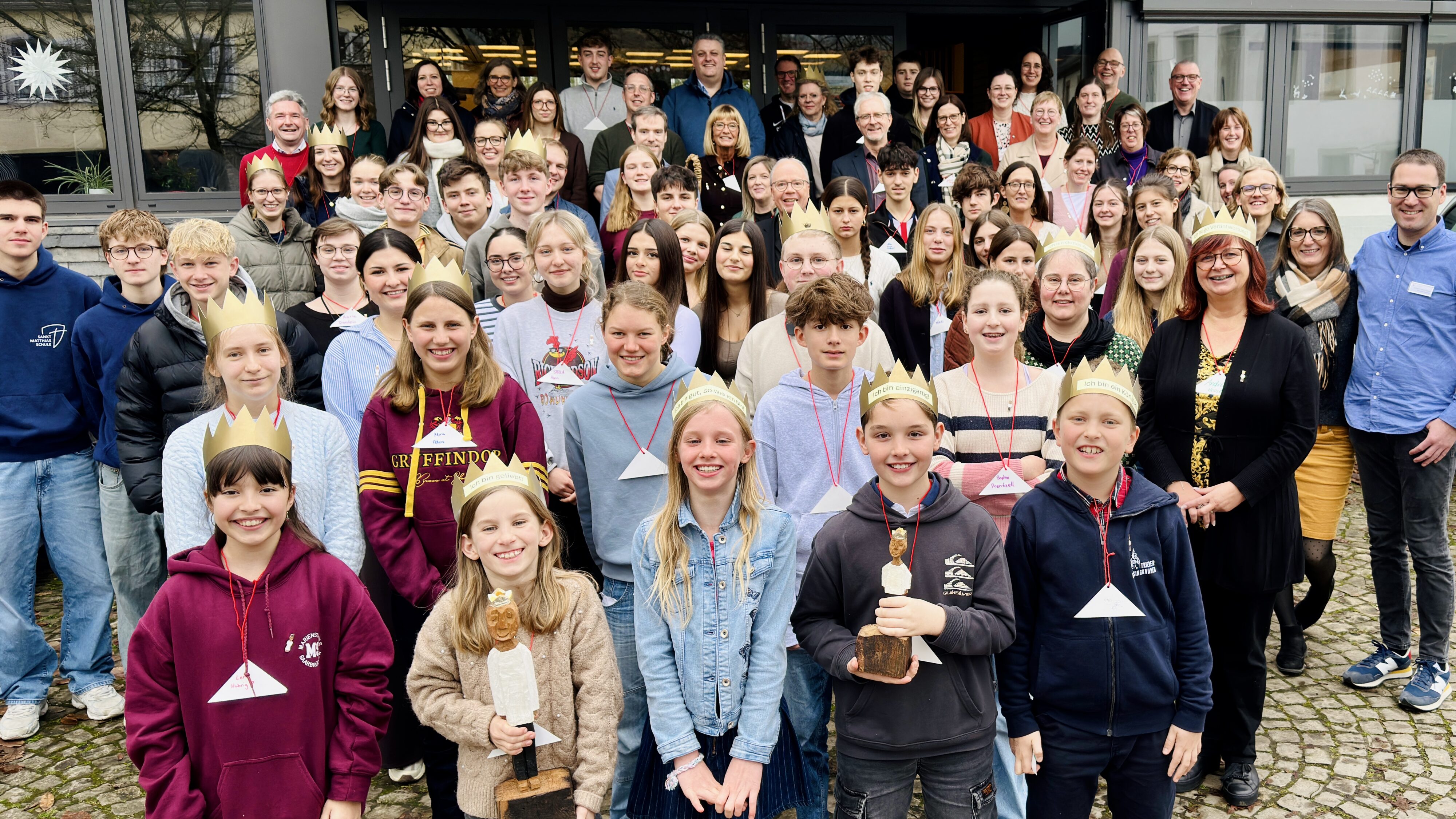Durch 13 Bistumsschulen ist er von April bis Dezember gereist, hatte Kontakt zu rund 7.000 Schüler*innen, in zehn Kindertagesstätten hat er vorbeigeschaut und in Rom war er natürlich auch: der königliche „Pilger der Hoffnung“, eine Königsfigur des Bonner Diakons Ralf Knoblauch. Am 5. Dezember endete seine Pilgerreise im Bischöflichen Generalvikariat (BGV) Trier bei einer Veranstaltung mit knapp 80 Schüler*innen, Lehrkräften und Bischof Dr. Stephan Ackermann.