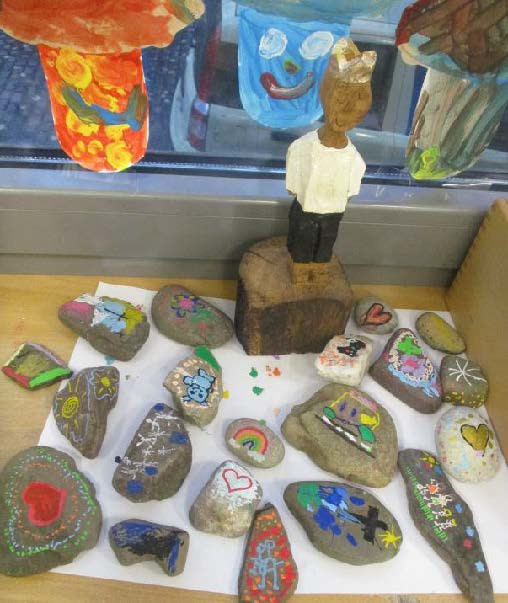 In der Kita St. Kastor in der Altstadt setzten sich die Kinder während des Besuchs des kleinen Königs mit dem Thema Hoffnung auseinander. Gemeinsam mit den ErzieherInnen gestalteten die Kinder Steine der Hoffnung und verteilten sie für Passanten in der Altstadt, um den vorbeigehenden Menschen an schwierigen Tagen Hoffnung zu geben. Natürlich war der kleine König beim Gestalten und Verteilen der Steine auch mit dabei. Anschließend machte er sich auf den Weg in die Kita St. Mauritius Rübenach, wo er an einer Kinderkirche zum Thema Pilger der Hoffnung teilnahm, und St. Menas in Stolzenfels. In der Kita St. Martin auf der Pfaffendorfer Höhe genoss er auf dem Außengelände einen wunderschönen Ausblick. Mit vielfältigen Aktionen wurde den Kindern in dieser Einrichtung klar, dass jeder Mensch gut so ist, wie er ist und eine unantastbare Würde besitzt. Die Kitakinder durften sich während seines Aufenthalts auch selbst als keine Königinnen und Könige fühlen.
